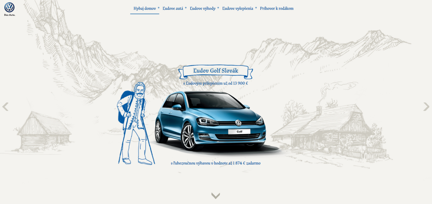 Pre klienta Volkswagen sme pripravili kampaň „Ľudove vozidlá do každej rodiny“. Pôvodným zadaním bolo vytvorenie videa, ktoré má atraktívnou formou upozorniť na Golf a Polo s výbavou Slovakia. Golf a Polo Slovakia sú akčné modely vytvorené podľa požiadaviek slovenských zákazníkov.